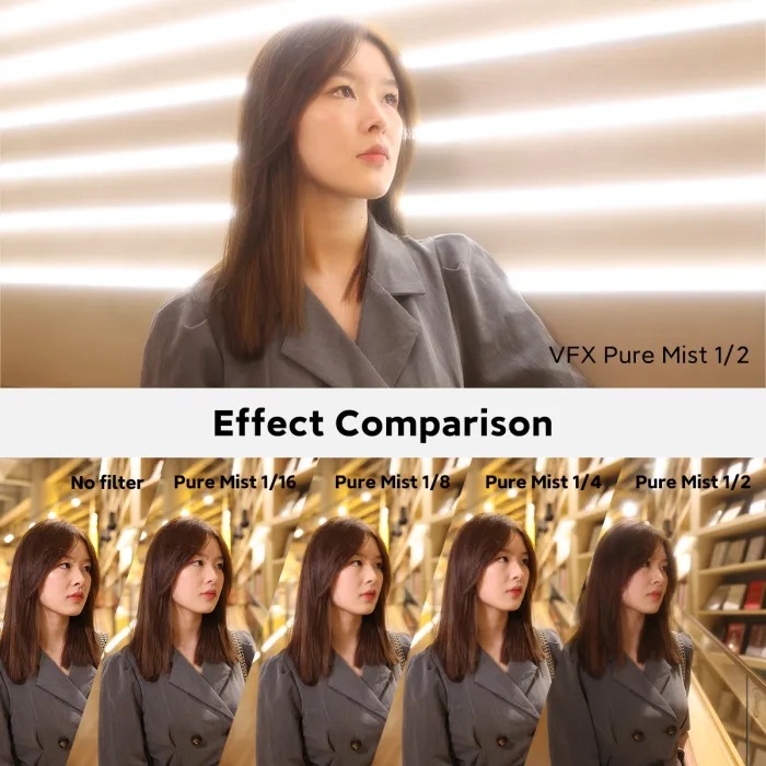 Filter VFX 4x5,65'' Pure Mist ima zelo lep učinek halo. Zlasti pri dejanskih svetlobnih virih in virih vidne svetlobe je razpršitev osvetlitve zelo močna.