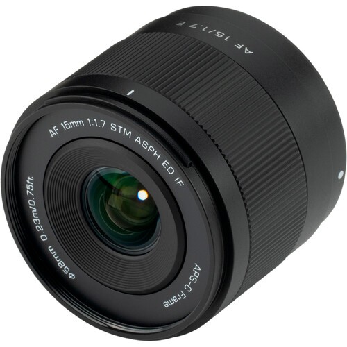 Viltrox AF 15 mm f/1,7 E je visokozmogljiv širokokotni objektiv s fiksno goriščno razdaljo, ki ustreza polnemu formatu 22,5 mm, zasnovan posebej za fotoaparate Sony E-mount APS-C. Zaradi izjemno svetle največje zaslonke f/1,7 je odlična izbira za fotografiranje v zahtevnih pogojih slabe osvetlitve in za ustvarjanje plitve globinske ostrine z impresivnim bokehom. Optična zasnova vključuje dvanajst elementov v desetih skupinah, vključno s tremi ED (izredno nizka disperzija), tremi HR (visoka refrakcija) in dvema asferičnima lečama, ki učinkovito zmanjšujejo bleščanje, duhove in aberacije ter zagotavljajo boljši kontrast in ostrino. Avtomatski fokus STM zagotavlja hitro, tiho in natančno ostrenje. Objektiv podpira elektronsko krmiljenje zaslonke in ima 9-lamelno zaslonko za lepo gladek bokeh. Z minimalno razdaljo ostrenja le 9,1 palca lahko enostavno zajamete podrobne bližinske posnetke. Objektiv je izdelan iz natančno utrjene aluminijeve zlitine za večjo vzdržljivost in podpira prenos podatkov EXIF ter posodobitve programske opreme prek vrat USB-C. Izjemno kompakten in lahek ohišje (6,3 oz) ga naredi idealnega objektiva za vsakdanjo rabo za fotoaparate Sony E-mount.