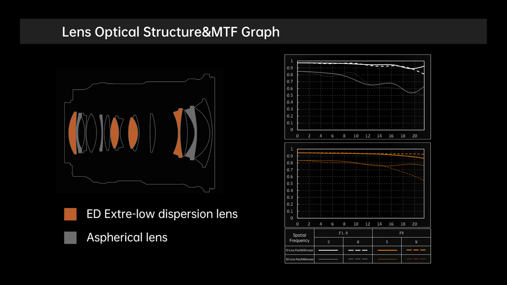 Pri izjemno širokem zornem kotu lahko velika zaslonka F1,8 doseže tudi izjemno majhno globinsko ostrino, kar prinaša občudovanja vredno in čudovito bokeh, ustvarja umetniško perspektivo in občutek prostorske stisnjenosti. Gladek prehod med ostro ostrino in mehko razostritvijo.