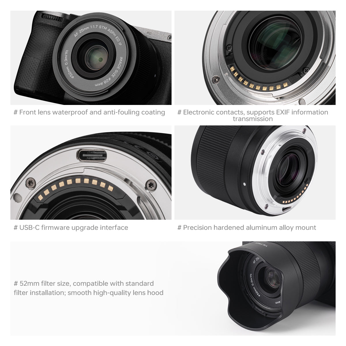 AF 25 mm F1,7 je Viltroxov lahki objektiv naslednje generacije z avtomatskim ostrenjem, ki ponuja izjemno vrednost za začetnike. Njegova kompaktna zasnova, natančno samodejno ostrenje in zaslonka F1,7 zagotavljajo odlično kakovost slike, zaradi česar ustvarjalno izražanje vsem uporabnikom ne povzroča težav. Prenosen in žepu prijazen objektiv omogoča, da je navdih vedno na dosegu roke.