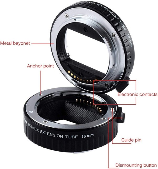 Visokokakovostni komplet avtomatskih makro podaljškov omogoča natančnejše ostrenje za povečane predmete v makro fotografiji. Vsak objektiv pretvori v makroobjektiv z izvirno optično kakovostjo po manjši ceni. Podaljševalne cevi DG ustvarijo razdaljo med objektivom in filmsko ravnino, kar omogoča natančnejše ostrenje.