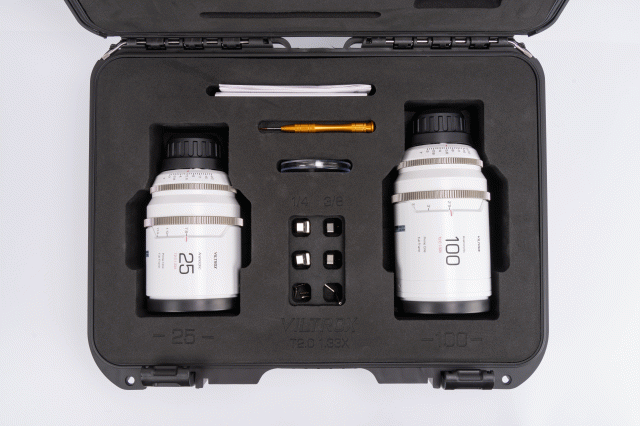 Komplet objektivov VILTROX Anamorphic Series 25/100mm T2 1,33x Anamorfni objektiv za polni okvir (PL Mount). Anamorfni objektivi so zasnovani za kinematografske kamere z bajonetom PL, kar pomeni Viltroxov uradni vstop v filmsko industrijo!