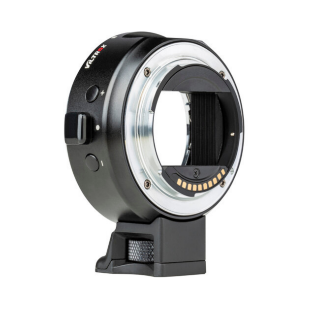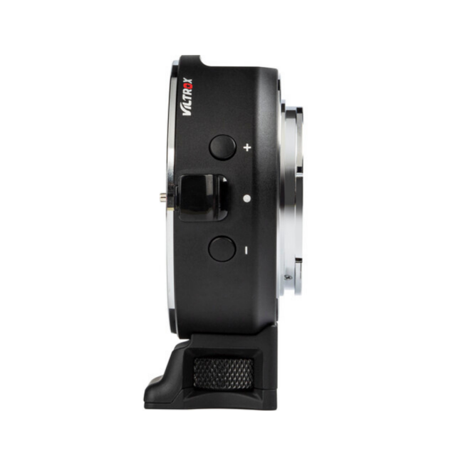 Adapter Mark V EF-E5 Canon EF Lens to Sony E-Mount Body Adapter with OLED Screen podjetja Viltrox je zasnovan tako, da omogoča uporabo Canonovih objektivov EF in objektivov s samodejnim ostrenjem na Sonyjevih fotoaparatih E-mount. Programabilni zaslon OLED lahko prikazuje goriščno razdaljo, zaslonko, način zaslonke in način nastavitve. Uglaševanje omogoča ročne nastavitve za nezdružljive objektive, gumba plus in minus pa omogočata nastavitev parametrov ostrenja.