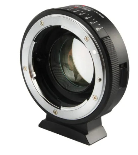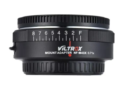 Viltrox NF-M43X 0,71x adapter za objektiv je pospeševalnik, ki omogoča uporabo objektivov Nikon F-mount na fotoaparatih Micro Four Thirds (MFT), zmanjša faktor izreza in poveča prepustnost svetlobe za eno stopnjo.