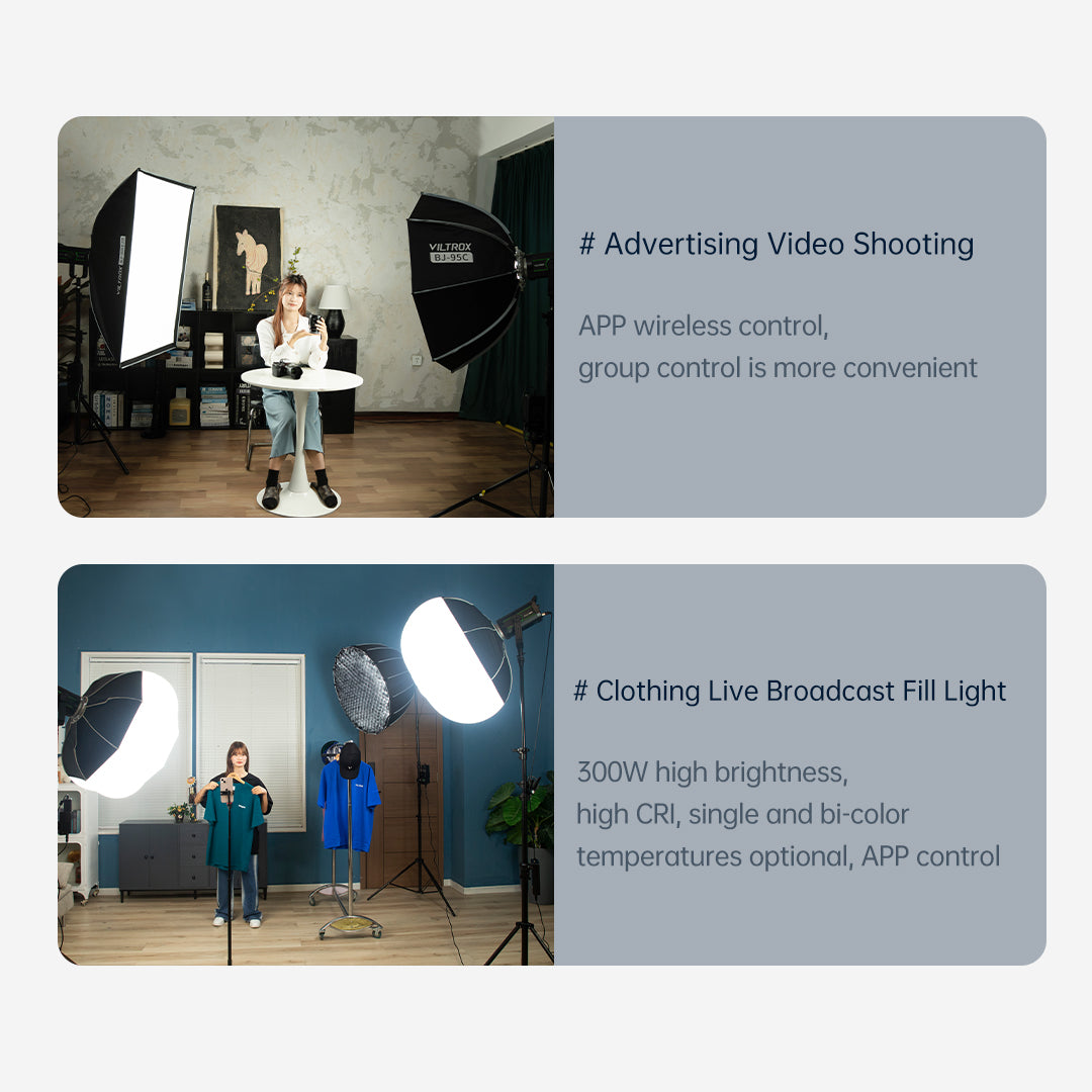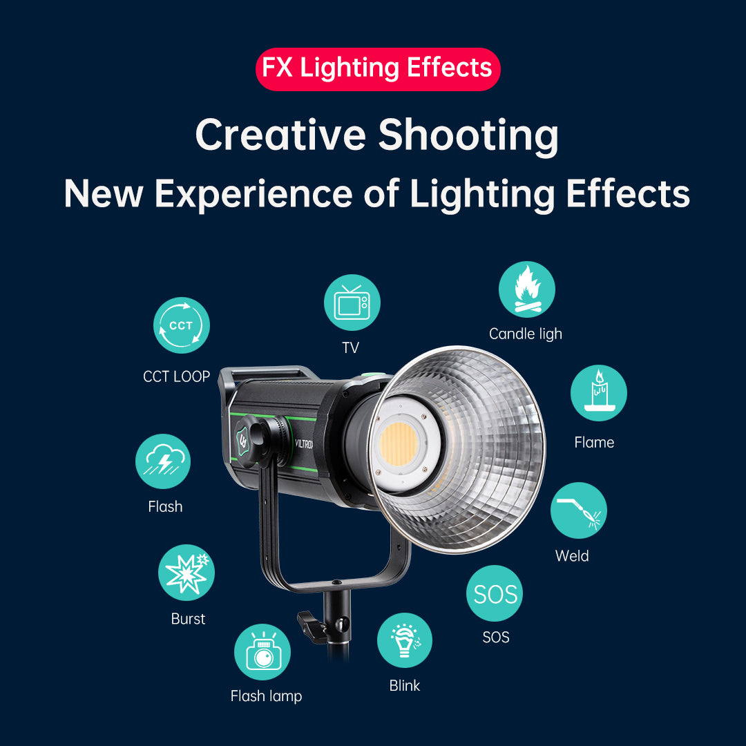 VILTROX NINJA 30/30B 300W Visoka svetilnost dvobarvne studijske luči COB z 10 FX svetlobnimi učinki Nadzor prek mobilne aplikacije