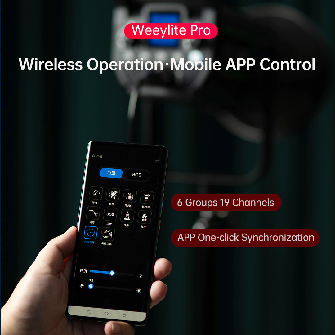 Vgrajen brezžični sprejemni čip, s pomočjo aplikacije WeeylitePro APP lahko na pametnem telefonu ali tabličnem računalniku natančno nadzorujete nastavitve in parametre različnih luči serije NINJA 30 ter tako sprostite več navdušenja