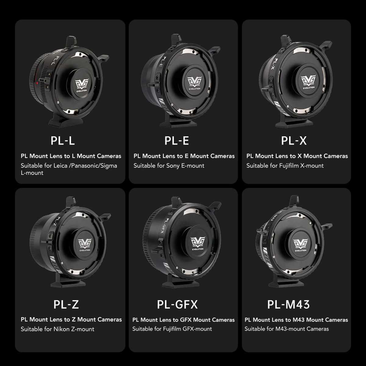 Adapterji Viltrox Zmove PL omogočajo uporabo objektivov PL na fotoaparatih z nastavkom L/E/Z/X/GFX/M43/R in so združljivi z vsemi filmskimi objektivi PL, vključno z anamorfno serijo Viltrox Epic. Različica za Fuji GFX. V prodaji od 4/5 2024.