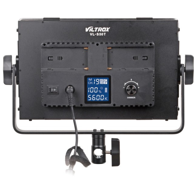 Komplet treh luči Viltrox VL-S50T. Intenzivna 50W dvobarvna LED luč z nastavljivo barvno temperaturo (v območju 3300-5600K) in intenzivnostjo (20-100 %; največ 4300 lm, 1900 lx/1 m). Ponuja možnost brezžičnega daljinskega upravljanja (2,4 GHz, priložen gonilnik) in možnost napajanja z baterijami (NP-F960 / F970, baterija ni priložena) ali zunanjim napajalnikom (priložen). Nastavitve parametrov omogoča pregleden zaslon LCD. Dimenzije 317x249x48 mm, teža 1400 g.