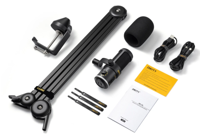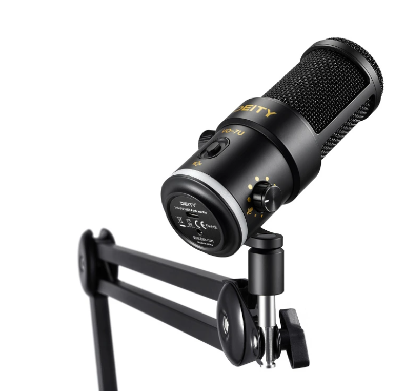 Deity VO-7U USB Podcast Microphone + Boom (črn) je profesionalni dinamični USB mikrofon za podcasterje in streamerje, ki ponuja široko združljivost z napravami, čisti zvok brez šuma, vgrajene kontrole in prilagodljivo RGB osvetlitev.