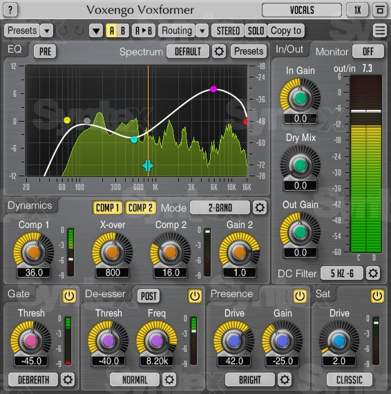 Voxengo Voxformer je namenski vokalni zvočni vtičnik (vmesniki AAX, AU in VST) za profesionalno obdelavo posnetkov človeškega glasu v aplikacijah za urejanje zvoka in videa (ki podpirajo standard VST, npr. Grass Valley EDIUS!). Vtičnik je združljiv z operacijskima sistemoma Windows in Mac OS X ter programi Cubase, Logic Pro, Ableton Live,…