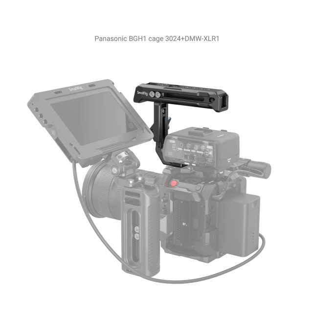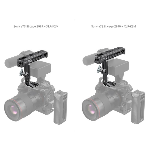 Vrhnji ročaj SmallRig za Sony XLR-K1M / K2M / K3M in Panasonic DMW-XLR1 3082 je namenjen držanju fotoaparata, opremljenega z adapterjem za mikrofon XLR, in pritrditvi dodatne opreme. Ročaj je pritrjen na zgornji del kletke fotoaparata z dvema fiksnima vijakoma 1/4"-20, ki preprečujeta njegovo zasukanje, z gumbom pa ga je mogoče premakniti navzgor ali navzdol za največ 25 mm, da se prilagodi različnim višinam mikrofonskega adapterja XLR.