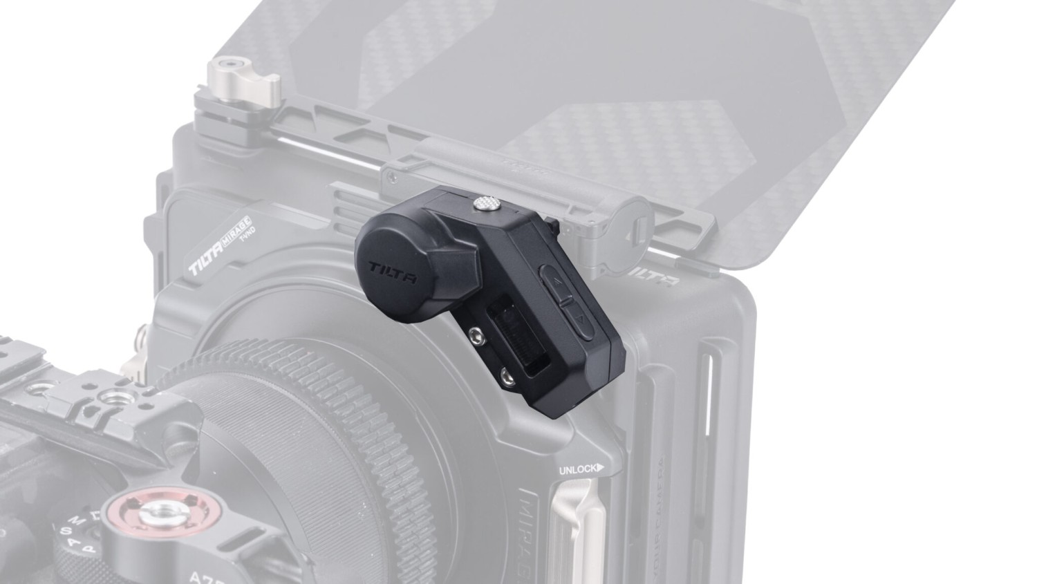 Brezžični motor za Tilta Mirage se pritrdi neposredno na 95-milimetrski variabilni modul ND in omogoča daljinsko nastavitev VND z brezžičnim krmilnikom za Mirage.