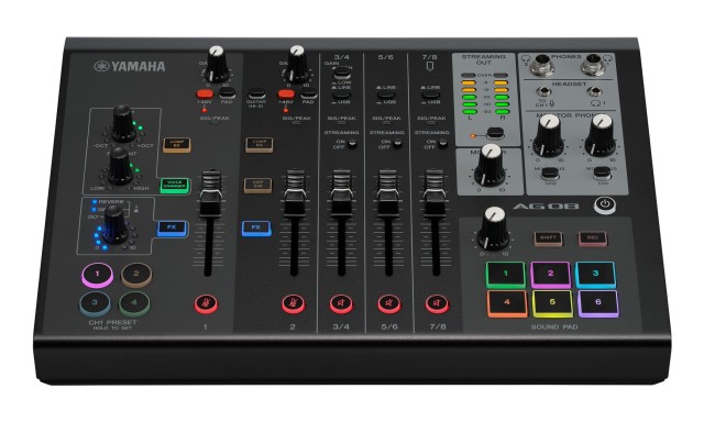 AG08 je 8-kanalna mešalna konzola za pretakanje v živo z dvema vhodoma s fantomskim napajanjem za kondenzatorske mikrofone, vgrajenim zvočnim vmesnikom USB, menjalnikom glasov in vzorčevalnikom.