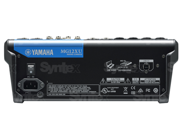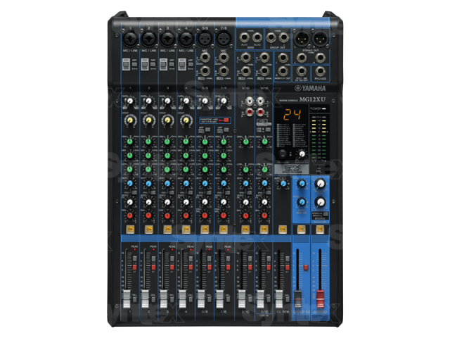 Yamaha MG12XU je kompaktna mešalna miza z dvanajstimi hkratnimi vhodi, ki je idealna za nastope, snemanje predavanj in drugo. Mešalna miza ima štiri mono mikrofonske/linijske kombinirane vhodne kanale, dva stereo linijska vhodna kanala, ki se lahko uporabljata tudi kot mono mikrofonska ali linijska vhoda (XLR in stereo 1/4" vhodi), ter dva stereo linijska vhoda s 1/4" in RCA priključki. Opremljen je tudi s povezljivostjo USB in lahko računalniku zagotovi dva vhodna in dva izhodna kanala s frekvenco do 24 bitov/192 kHz, zato je idealen za snemanje nastopov v živo, demo posnetkov in še več.