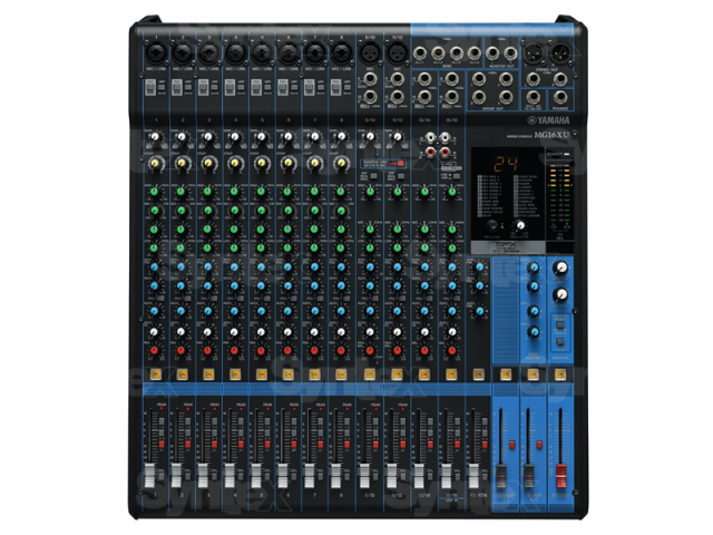Yamaha MG16XU je kompaktna mešalna miza s šestnajstimi hkratnimi vhodi, ki je idealna za nastope, snemanje predavanj in drugo. Mešalna miza ima osem mono mikrofonskih/linijskih kombiniranih vhodnih kanalov, dva stereo linijska vhodna kanala, ki se lahko uporabljata tudi kot mono mikrofonska ali linijska vhoda (XLR in stereo 1/4" vhodi), ter dva stereo linijska vhoda s 1/4" in RCA priključki. Opremljen je tudi s povezljivostjo USB in lahko računalniku zagotovi dva vhodna in dva izhodna kanala s frekvenco do 24 bitov/192 kHz, zato je idealen za snemanje nastopov v živo, demo posnetkov in še več.