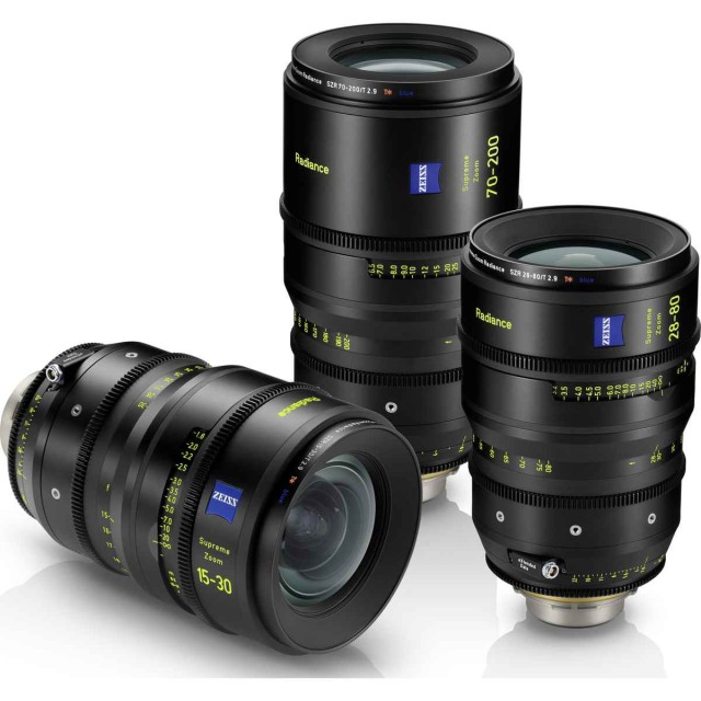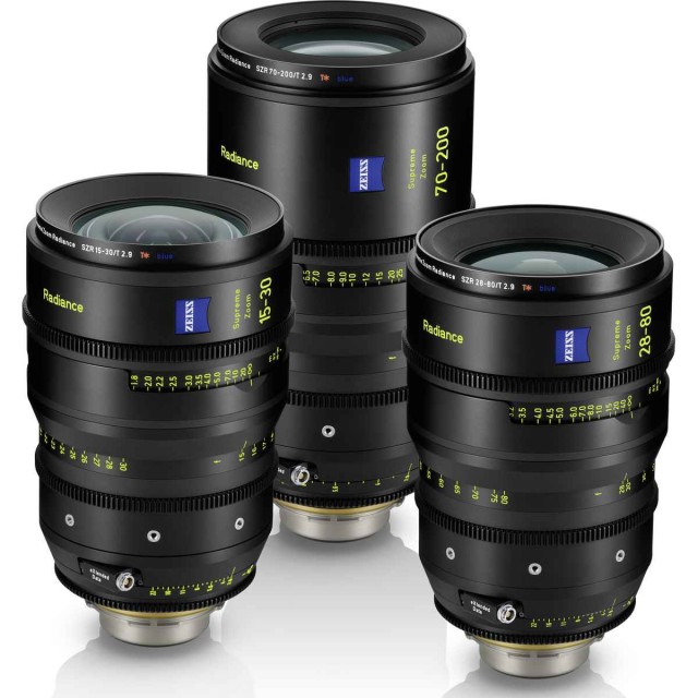 Objektivi ZEISS Supreme Zoom Radiance so edinstvena linija filmskih objektivov z zoomom in edini objektivi z zoomom, ki so primerljivi z upodobitvijo slike serije Supreme Prime Radiance. Trije na novo zasnovani vrhunski filmski zoom objektivi T/2,9 - 15-30 mm, 28-80 mm in 70-200 mm - imajo enako modro optiko "T*" kot priljubljeni modeli Supreme Prime Radiance. To snemalcem omogoča, da ustvarijo svoj značilen videz z lepimi, doslednimi in nadzorovanimi bleščicami, toplejšo reprodukcijo barv in prijetnim filmskim značajem slike, vključno s čudovito bokeh. Zumi Radiance ponujajo edinstveno slikovno upodobitev pri filmskih zumih in jih je mogoče odlično kombinirati s fiksnimi objektivi Zeiss Radiance Prime in starinskimi objektivi. Najsodobnejša ergonomija in popolna podpora podatkov o objektivu sta standardna. Naročila od 11/2024, prve dobave od 4/2025.