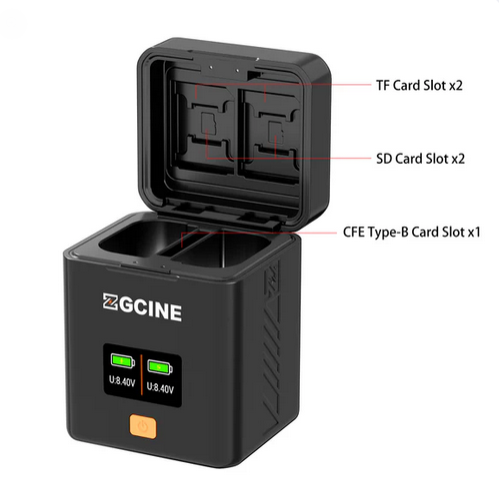 ZGCINE polnilni kovček je večnamenski dodatek za baterije Canon LP-E17. Podpira hitro polnjenje USB-C PD in ima namenske reže za dve SD, dve TF in eno CFE Type-B pomnilniško kartico. S 0,96-palčnim OLED zaslonom je ta kompakten kovček vsestranska rešitev za polnjenje in organizacijo vaše opreme.