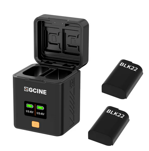 Polnilno ohišje ZGCINE za baterijo Panasonic LUMIX DMW-BLK22 je kompaktna in večnamenska polnilna rešitev z vhodom USB-C PD, dvojnim polnjenjem baterije in vgrajenimi režami za shranjevanje kartic.