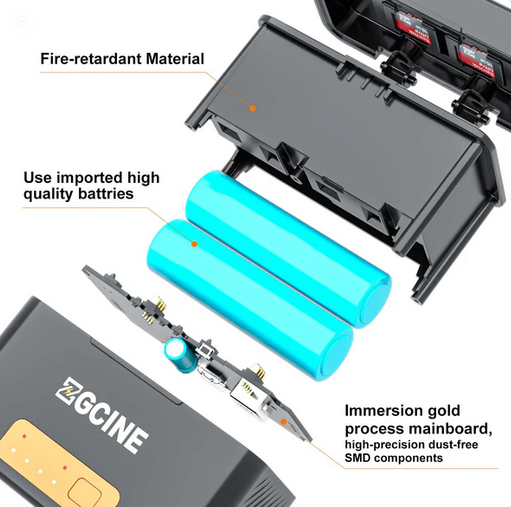 Polnilno ohišje za baterije GoPro ZGCINE (PS-G10 MINI Kit 2) je prenosna in trpežna polnilna rešitev, ki zagotavlja napajanje baterij GoPro na poti. Ta polnilni etui z robustno konstrukcijo iz ABS učinkovito polni dve bateriji GoPro hkrati, hkrati pa ponuja tudi dodaten izhod USB-C za druge naprave. Priložene baterije 901 zagotavljajo zanesljivo rezervno napajanje, zato je to nepogrešljiv pripomoček za uporabnike akcijskih kamer.