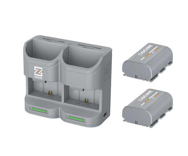 Komplet potovalnega polnilnega etuija ZGCINE PC2-LPE6P vključuje dve bateriji LP-E6P z visoko zmogljivostjo 2600 mAh (siva) in kompakten polnilni etui, ki zagotavlja zanesljivo napajanje za brezogledne fotoaparate Canon (R5, R6, R7), kamere Blackmagic Pocket Cinema (4K/6K), serije Z CAM E2 in dodatkov, kot sta Tilta PowerGrip in SmallRig MagicFIZ, kar ga naredi nepogrešljivo prenosno rešitev za napajanje profesionalne kinematografske in fotografske opreme.