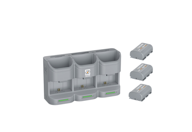 Komplet potovalnega polnilnega kovčka ZGCINE PC3-LPE6P vključuje tri baterije LP-E6P z visoko zmogljivostjo 2600 mAh in kompakten siv polnilni kovček, ki zagotavlja zanesljivo, prenosno napajanje za fotoaparate Canon, kamere Blackmagic Pocket Cinema, modele Z CAM in združljivo dodatno opremo, kot so ročaji, oprijemi in brezžični sistemi za nadzor objektiva.