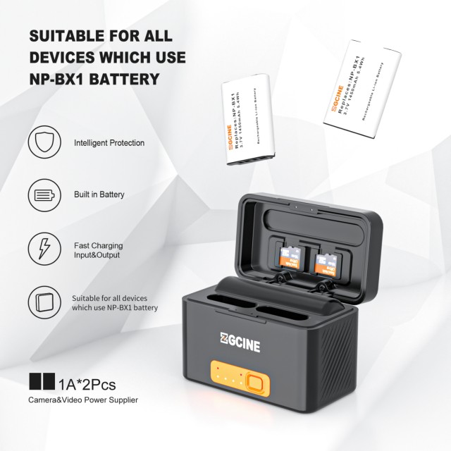 Polnilno ohišje ZGCINE Sony BX1 je prenosni polnilec z dvema režama in vgrajeno baterijo 5600 mAh za hitro polnjenje in priročno shranjevanje baterij NP-BX1. Podpira 20W vhod/izhod USB-C PD za učinkovito dovajanje energije.