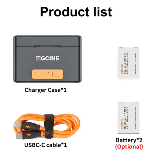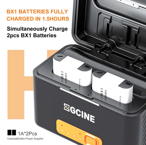 Nabíjecí pouzdro ZGCINE SONY BX1 (PS-BX1 Kit2) se dodává se dvěma bateriemi NP-BX1 a nabízí přenosné řešení pro nabíjení zařízení Sony s rychlým nabíjením a efektivním skladováním.