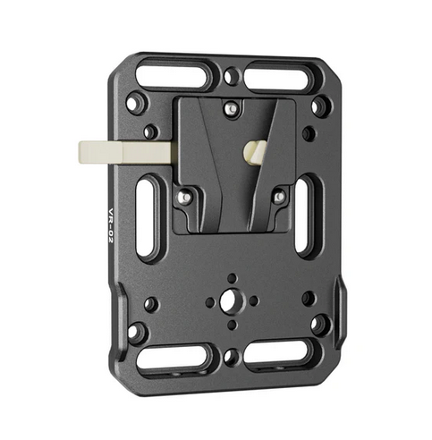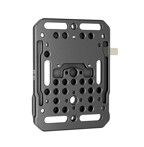 Baterijska plošča ZGCINE VR-02 V-Lock Mount je zanesljiva in vsestranska rešitev za namestitev baterij V-mount na vaš fotoaparat. Zasnovana je z nastavkom V-lock in vzvodom za hitro sprostitev, ki ustreza večini baterij V-mount (razen baterij PAGlink in Patona Premium BP-190WS). Ta plošča je pasivna montažna rešitev, kar pomeni, da nima elektronike in se pri napajanju opreme zanaša na lastne izhode baterije. Plošča vključuje več montažnih točk, kot so poglobitve 1/4"-20", M3, M4, luknje z navojem 1/4"-20", luknje z navojem M4 in luknja z navojem ARRI 3/8"-16, zato je zelo prilagodljiva za pritrditev dodatne opreme, kot so dvojne objemke za palice ali magične roke. Za zagotavljanje stabilnosti sta nameščena dva omejevalnika, ki preprečujeta, da bi se baterija med montažo zasukala. Ta plošča je izdelana iz trpežnega aluminija, zato je odporna proti zahtevam profesionalne uporabe in združljiva s fotoaparati, kot je Blackmagic URSA Mini. Upoštevajte, da ni priložen del V-Lock (moški) in da plošča nima priključkov za napajanje.