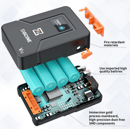 ZG-V50 je odlična izbira za mobilne telefone, videokamere, luči LED, monitorje in drugo, saj je odlična izbira za vse, ki potrebujejo zanesljiv vir energije v kompaktnem ohišju.