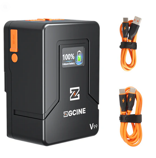 Baterija ZGCINE V-Mount 16,8 V, 99 WH ponuja zmogljive in vsestranske možnosti polnjenja s hitrim polnjenjem USB-C PD, zaslonom OLED in več izhodnimi priključki, vključno z D-Tap in USB, kar zagotavlja zanesljivo napajanje vaših naprav.