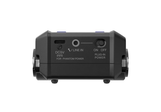 - Fantomsko napajanje: EXH-6e lahko zagotavlja fantomsko napajanje za 2 kombinirana vhoda XLR/TRS. Priključite vhod USB-C kapsule na vtičnico ali baterijo USB za napajanje kondenzatorskih mikrofonov. Vtično napajanje je na voljo tudi za lavalier mikrofone, priključene na 3,5-milimetrski vhod.