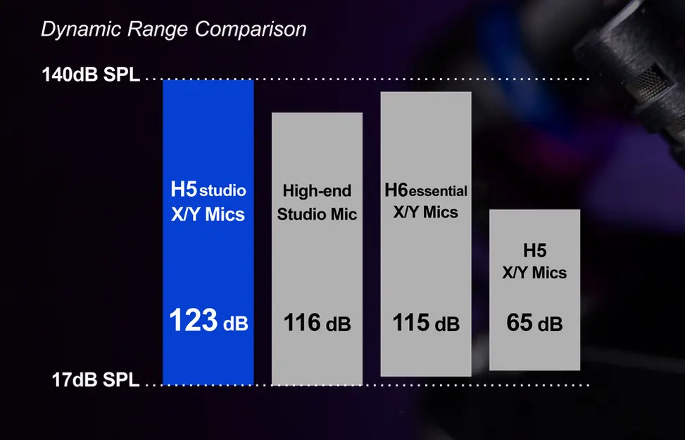 H5studio zajame do šest sledi (štiri izostale sledi in stereo mešanico) s frekvencami vzorčenja do 192 kHz.