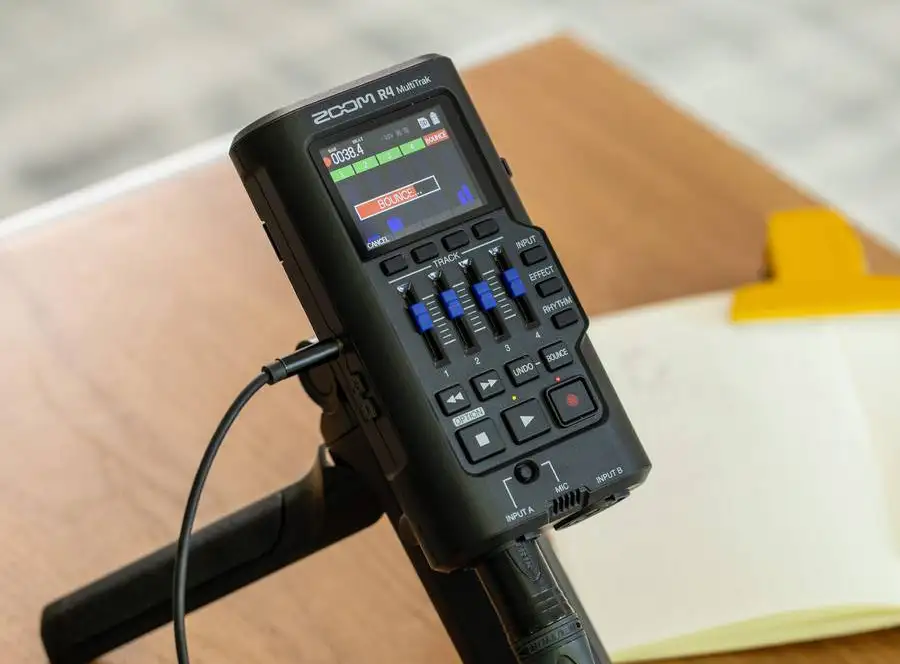Z napravo R4 lahko posnamete do štiri posnetke, jih zmešate in nato odbijete na namensko "odbitno stezo". Tako lahko sprostite dodatne sledi in nadaljujete z dodajanjem slojev.