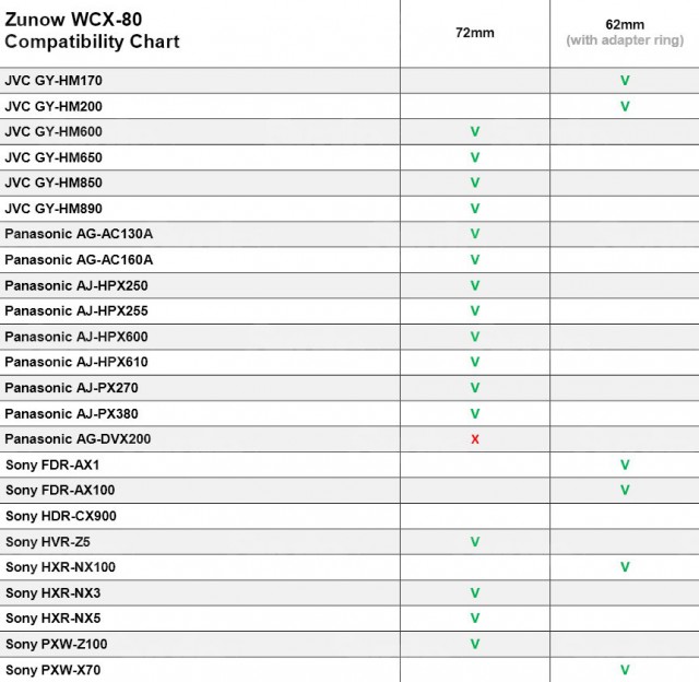 Visokokakovostni širokokotni daljnogled Zunow ponuja 0,8-kratno povečavo z minimalnim popačenjem. Združljiv je s fotoaparati Panasonic, Sony ali JVC ter vrsto Canonovih objektivov. Združljiv je z 72- in 62-milimetrskim navojem (zahvaljujoč priloženemu adapterju) in omogoča namestitev 82-milimetrskih filtrov. Zaradi majhne teže (285 g), združljivosti s številnimi pogosto uporabljenimi kompendiji (npr. Alphatron Mattebox 4x4) in opcijske nape za objektiv Zunow HU-85 je zelo vsestranski izdelek.