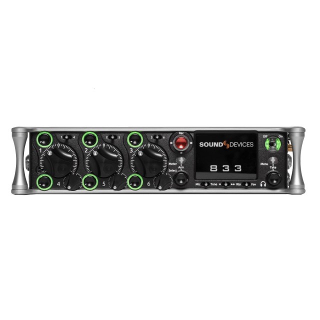 833 ima 6 mikrofonskih/linijskih predojačevalnikov, 8 kanalov, 12 stez, 6 analognih izhodov in zelo natančen generator časovnih kod. Ponuja tudi številne funkcije, prevzete iz vrhunskega modela Sound Devices Scorpio, vključno z novim vezjem predojačevalnika, 2 režama za kartice SD, dvema režama za baterije L-Mount in notranjim diskom SSD s kapaciteto 256 GB. Poleg tega za obdelavo podatkov uporablja enako arhitekturo FPGA kot Scorpio, vključno s prilagodljivim usmerjanjem signalov: fizične vhode je mogoče dodeliti katerikoli sledi.